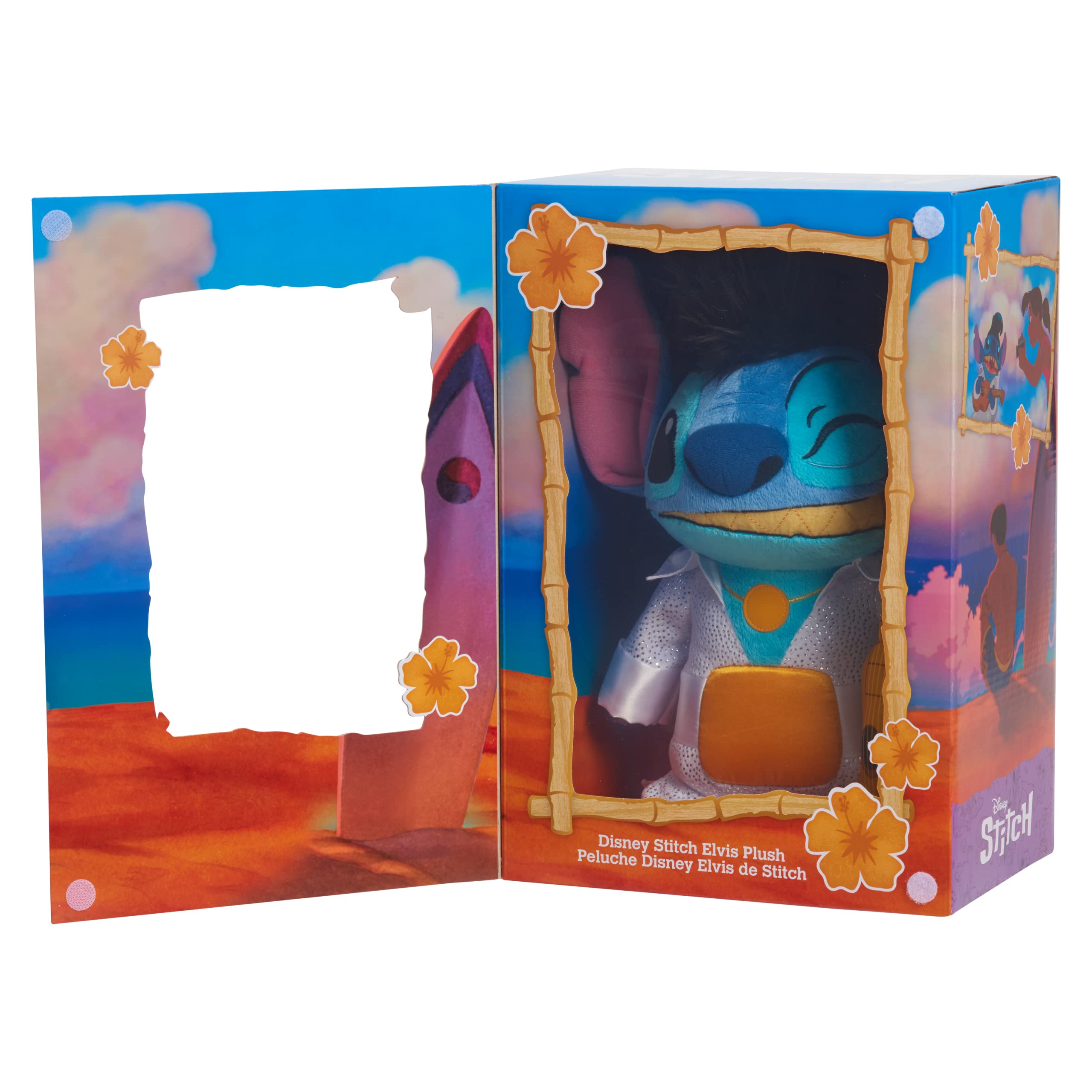 - Amazon Exclusive Collectible: The Disney Stitch Elvis Plush features the loveable alien impersonating the King of Rock ‘n’ Roll, as seen in Disney’s Lilo & Stitch animated film. This premium plush toy comes packaged in a collector’s window box.